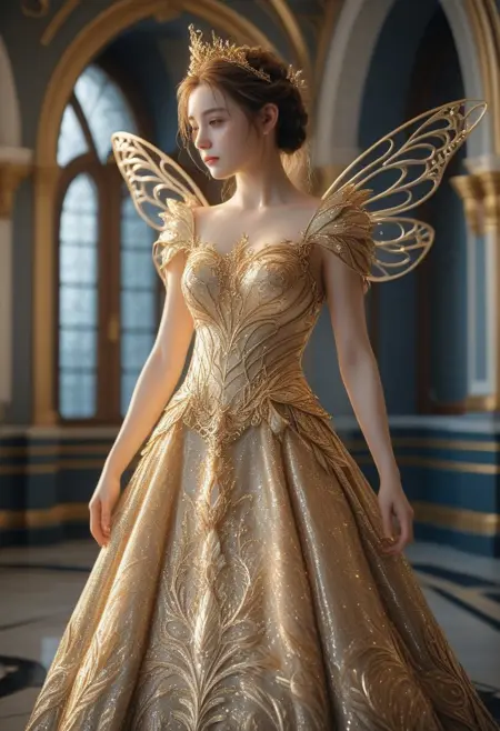 빛을 받으며 즐기세요: 금을 좀 사세요. 금박, 세공 등으로 만든 패션과 개념.