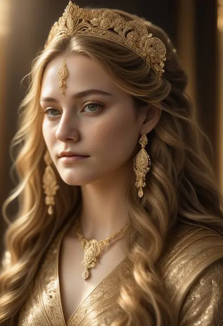 빛을 받으며 즐기세요: 금을 좀 사세요. 금박, 세공 등으로 만든 패션과 개념.