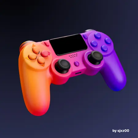 gicon, 3D 렌더링, <아이콘 본체>, 그라데이션 채우기, 분홍색, 노란색, 보라색, 검은 배경, 달빛, 그림자, 부드러운 빛, 확산광