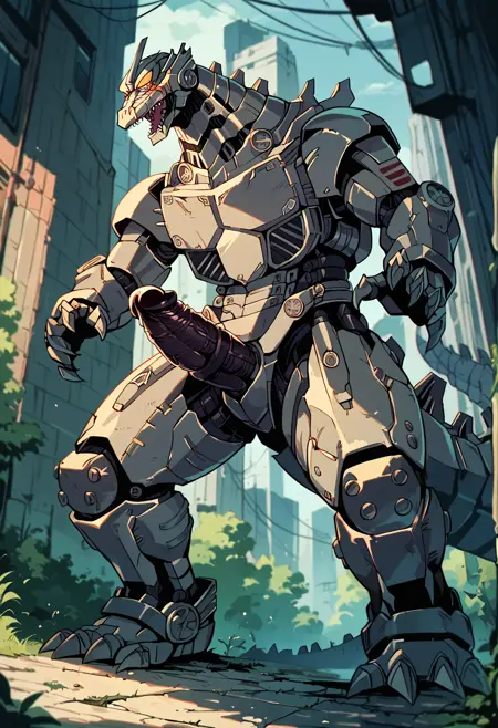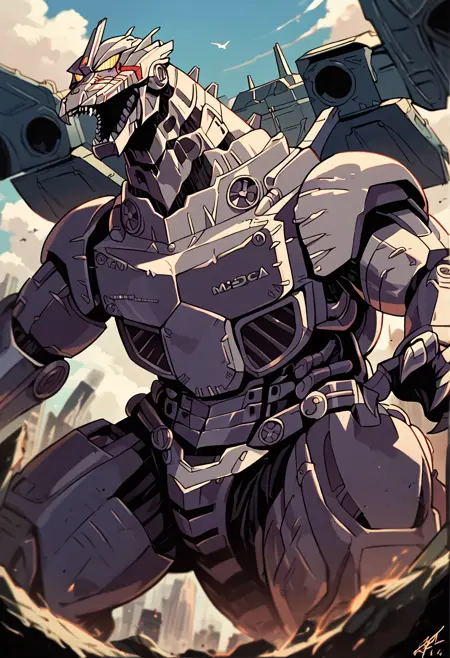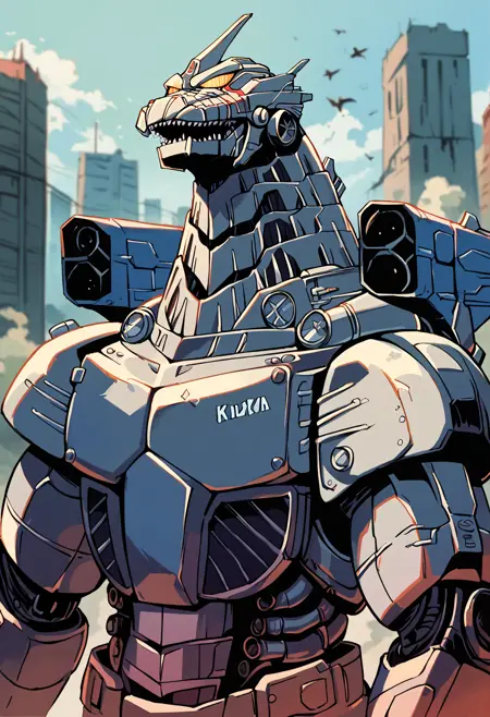 Mecha 提示词:Mecha_godzilla, shoulder cannons, 3D, mecha, robot