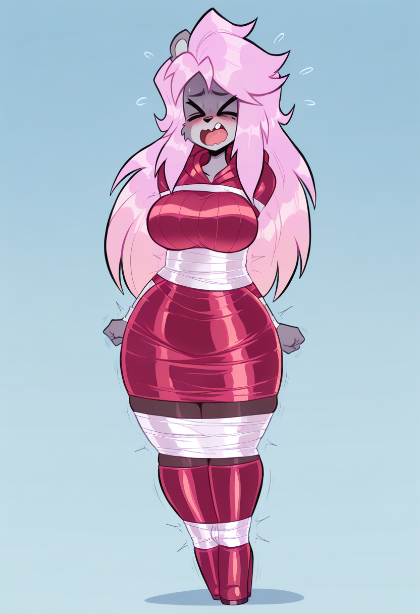 A lot of the data consists of furry and bondage art, however it is more than capable of producing humans and sfw content.