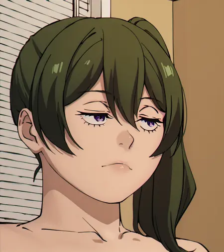 yajyuu,realistic, portrait,looking at viewer, blinds,closed mouth,shadow, lips, indoors, upper body, nose,expressionless,window, simple background, close-up, meme, parody, real life insert,sidelighting,looking to the side,shade,shiny, frown,smile