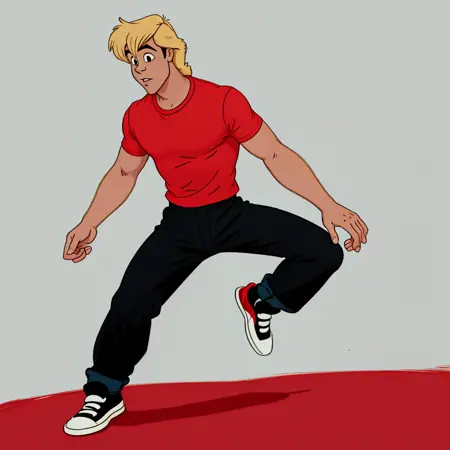 如需电影中的服装,请在提示中添加“背心和牛仔裤”。