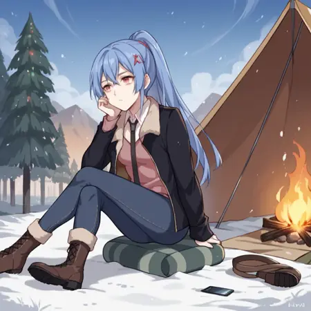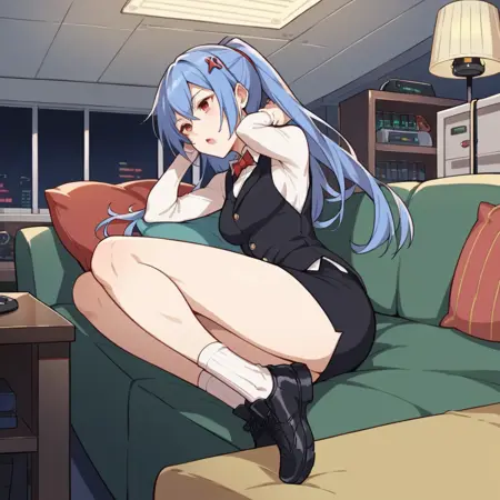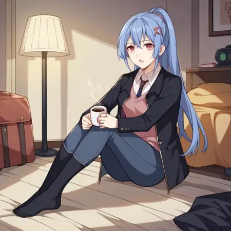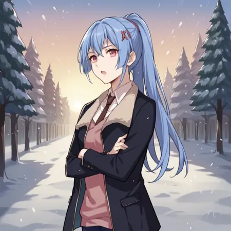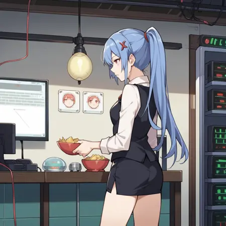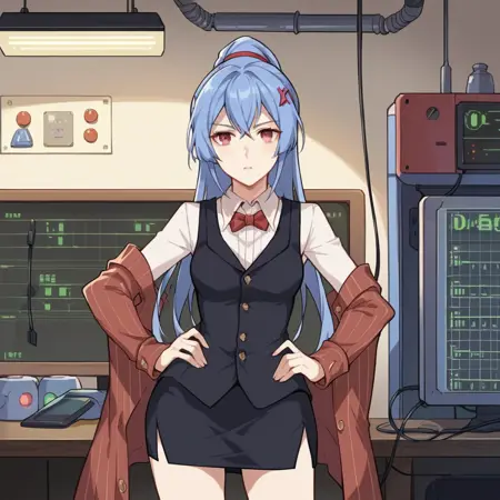 Disclaimer: Add " jacket, pinstripe pattern," to Negative Prompt or don't if you want to have her jacket on her arms. I prefer to not have it.