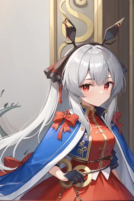 weedy, 회색 머리카락, 매우 긴 머리카락, 빨간 눈, 헤어밴드, 꼬리