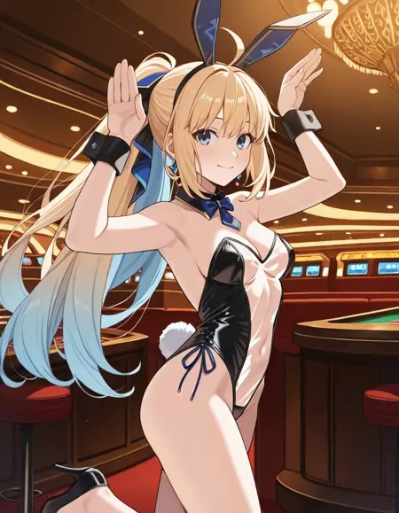 Saviour,1个女孩,单独,长发,蓝眼睛,金发,蓝发,非常长的头发,发尖翘起,svr发带,马尾辫