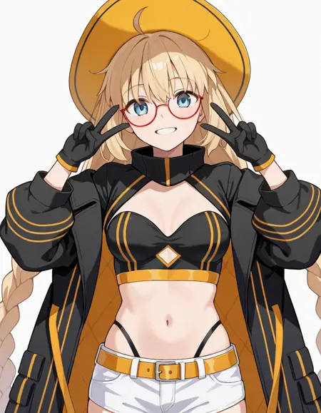 Aniv,aniv外套,aniv比基尼,aniv帽子,aniv辫子,aniv超短裤,aniv眼镜,aniv手套,aniv腰带,aniv女巫帽,大腿绑带,腹部,肚脐,黑色手套,白色裙子,及膝靴