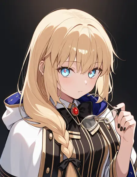 Aesc,水蓝色眼睛,长发,金发,头发垂过肩膀,第一根辫子,单辫,第一副眼镜,圆框眼镜