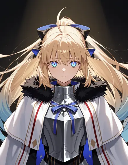 Aesc,水蓝色眼睛,长发,马尾辫,侧发,淡金色头发,第二发带,发带