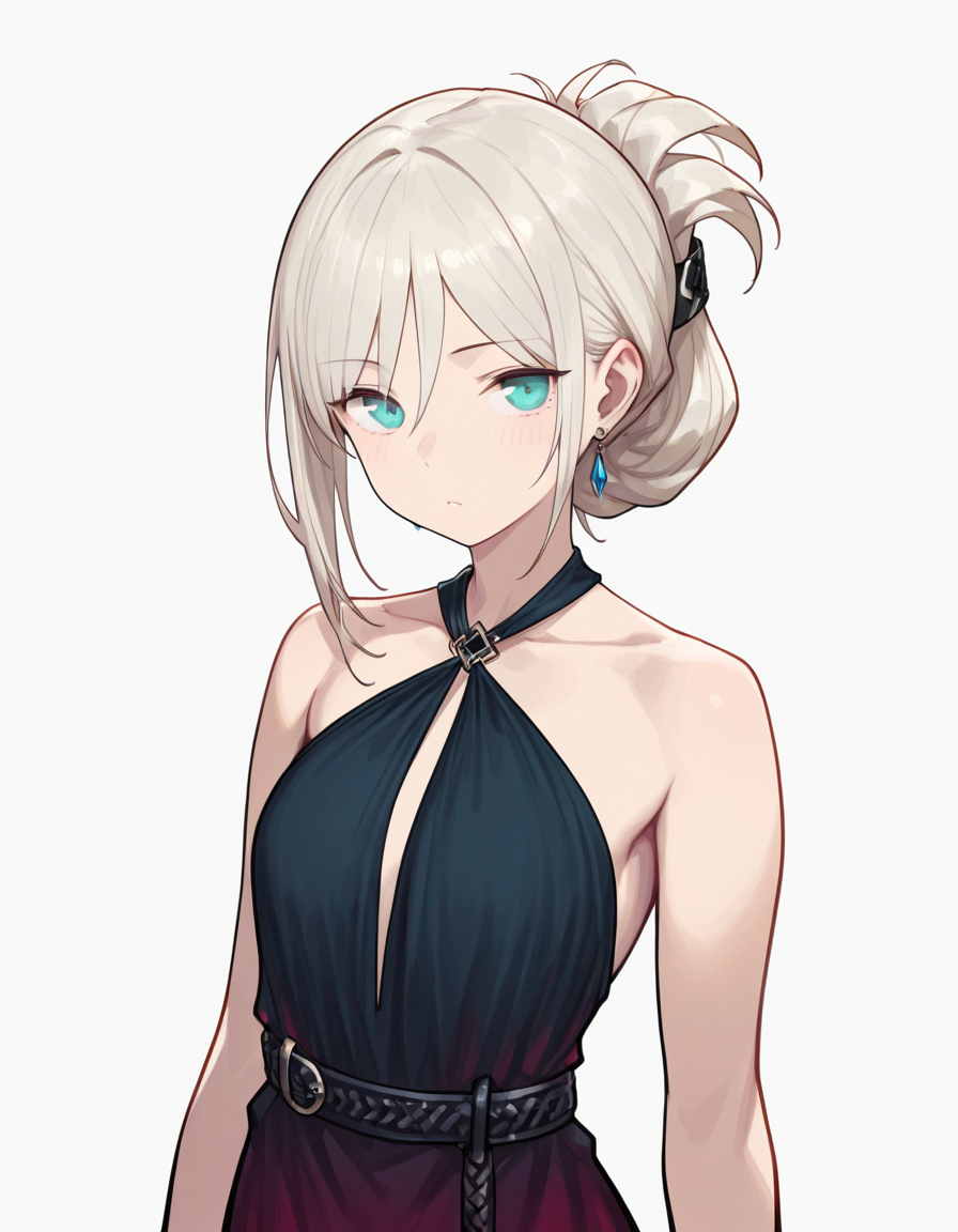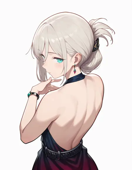 An-94_dress,gradient dress, party_jewelry,hair ornament, earrings, black footwear,bracelet, folded ponytail, party_heels, party_belt, party_dress,