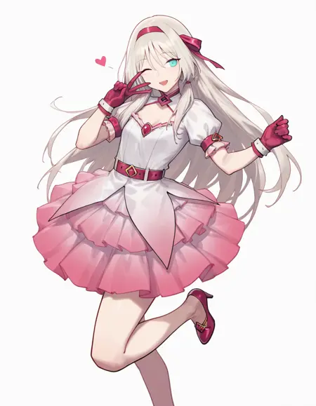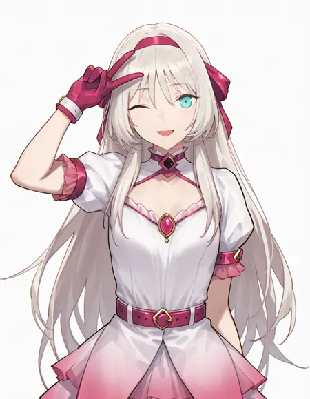 An-94_magic, collarbone,silver blonde hair,red hairband, pink gloves, magic_puffy_sleeves, magic_pink_gloves, magic_belt, magic_dress, magic_hairband