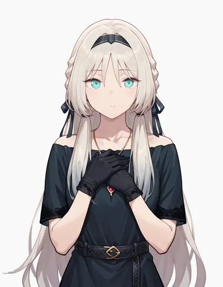 An-94_orchest, orchest_heels, orchest_belt, orchest_jewelry, orchest_hair_ribbon, orchest_dress, orchest_gloves, orchest_side_braid,thighs,off-shoulder_dress, orchest_hairband