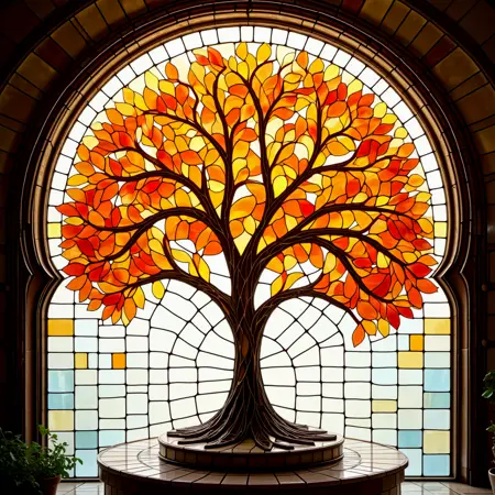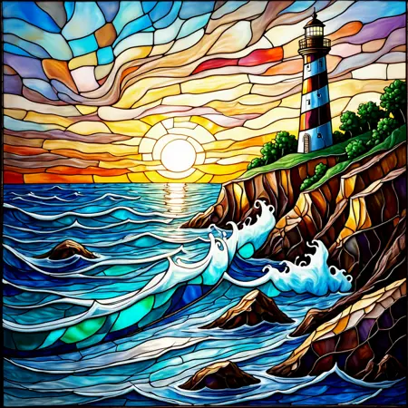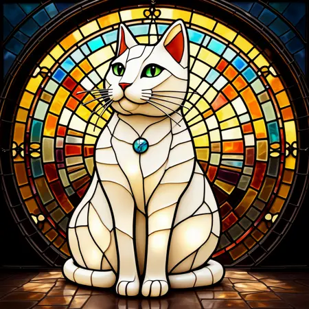 스테인드 글라스 및 금속 LoRA는 황동과 스테인드 글라스가 포함된 이미지로 학습되어, 색색의 요소와 금속적인 하이라이트가 특징인 특정 스타일을 생성합니다. 가중치를 낮추면 사람, 얼굴, 생물 등 다른 요소들이 더 쉽게 나타납니다.