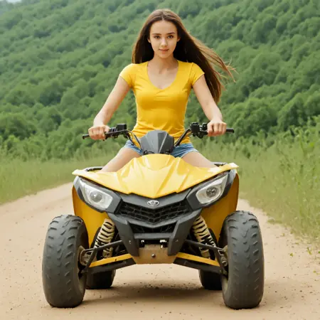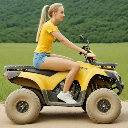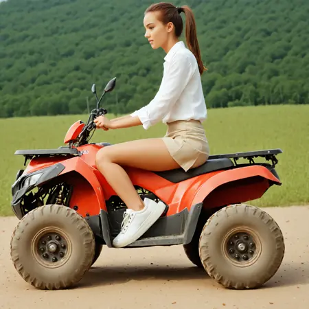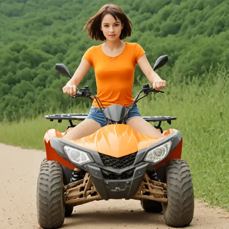 riqua, <front view|side view>, <人物> 骑着四轮车 ...