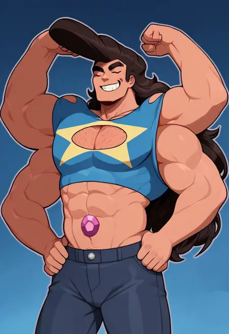 Steg_Multiverse, male, 4 arms, pompadour, long hair, belly gem