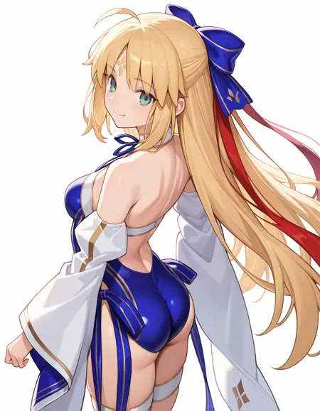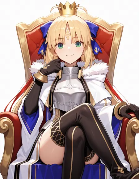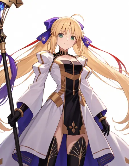 Artoria Avalon, long hair, sidelocks, blonde hair, green eyes, AA_hair_bow, AA_forehead_mark,