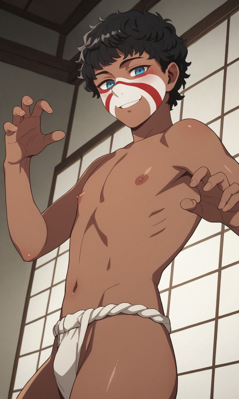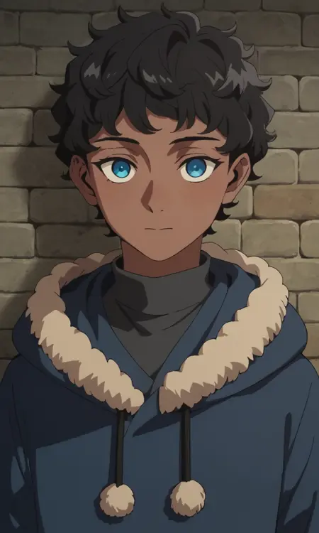 kabrudm, short hair, black hair, curly hair, blue eyes, dark skin