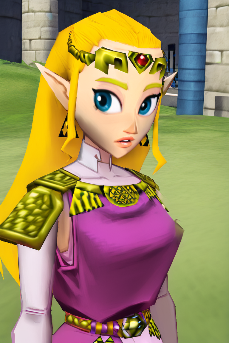 Certain characters in Pony will break the style, I suggest increasing LoRA strength until reaching the desired effect in such cases. Have fun and get creative, otherwise here are some Zelda: Ocarina of Time characters trained into the LoRA: