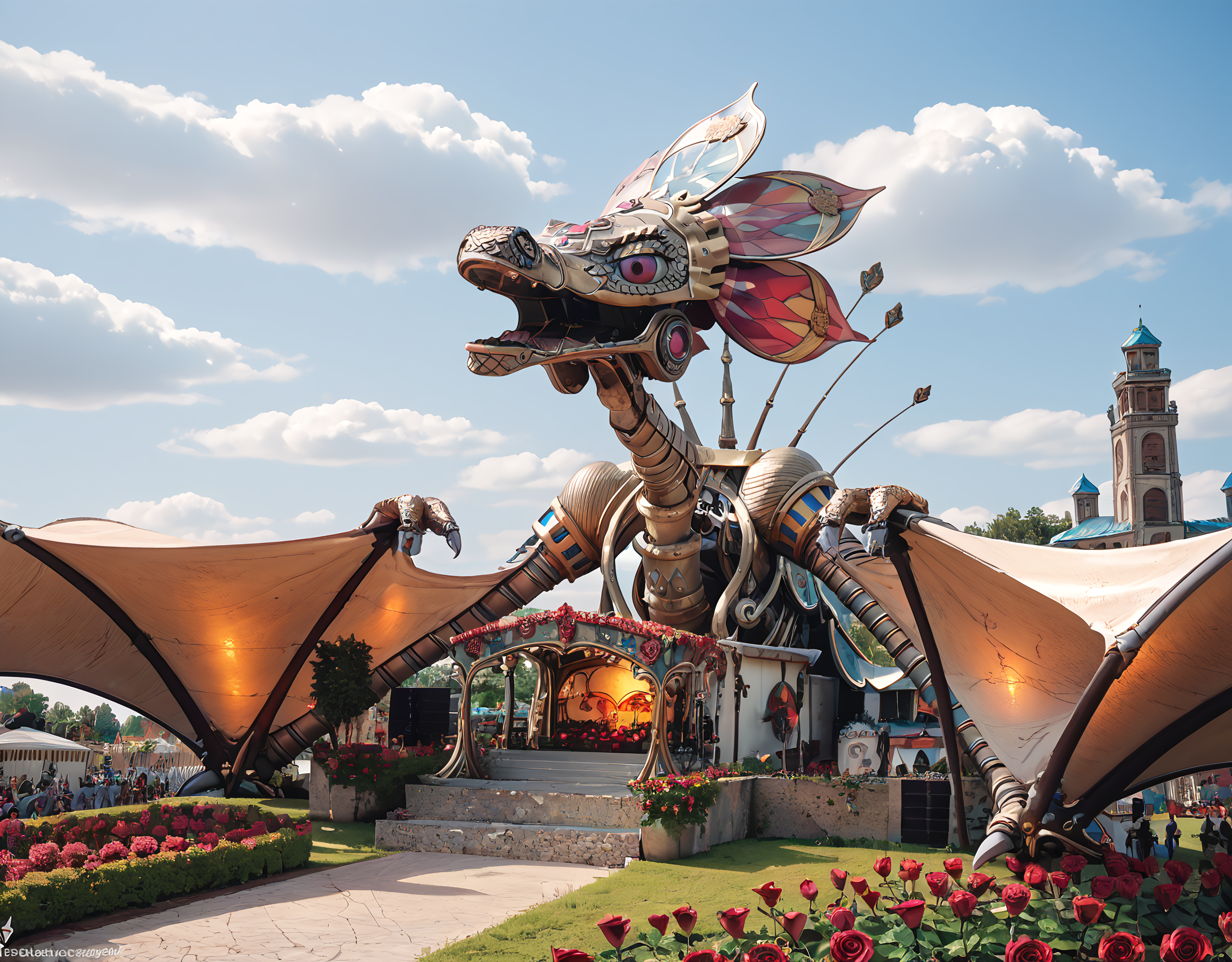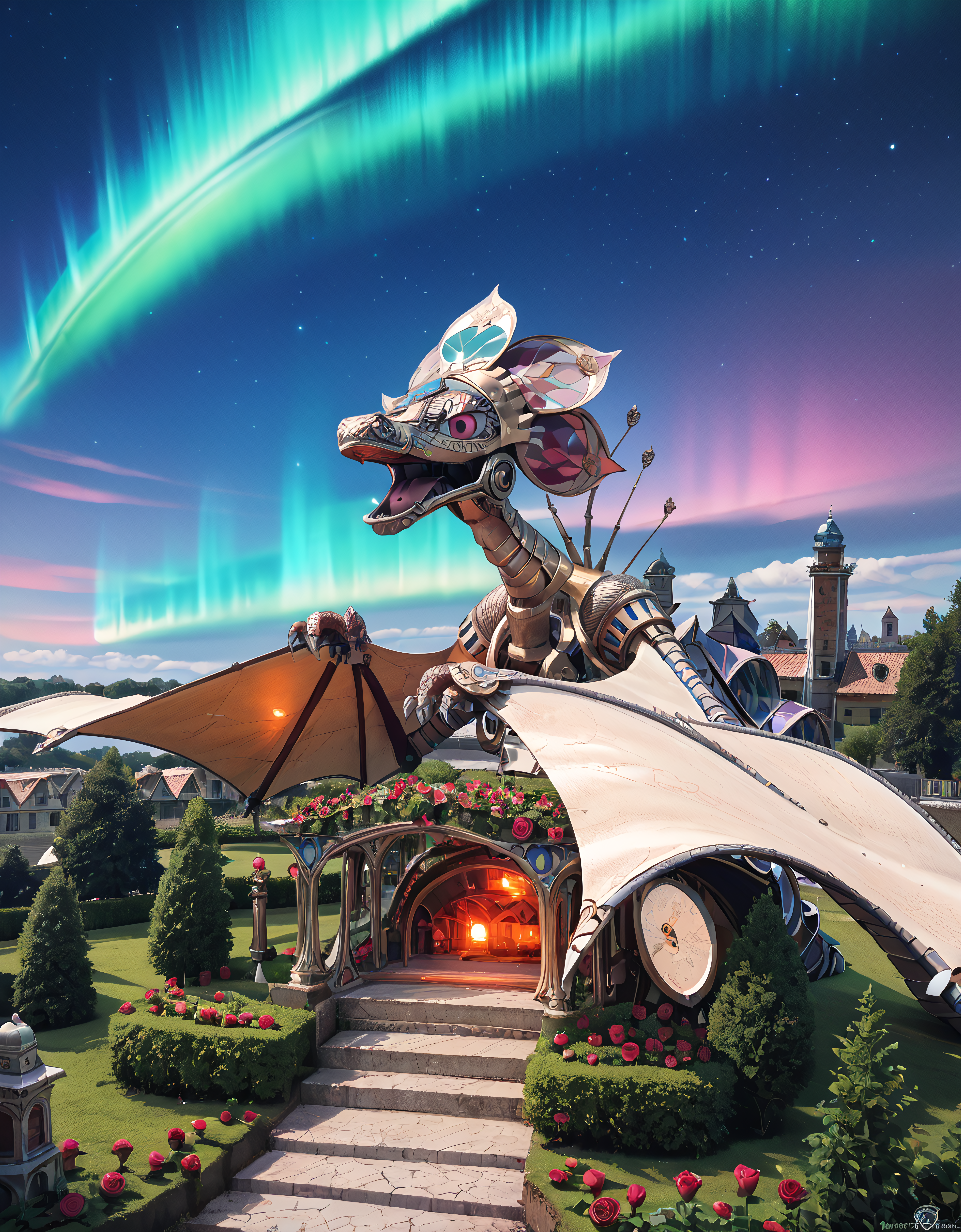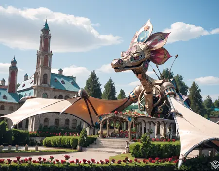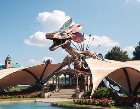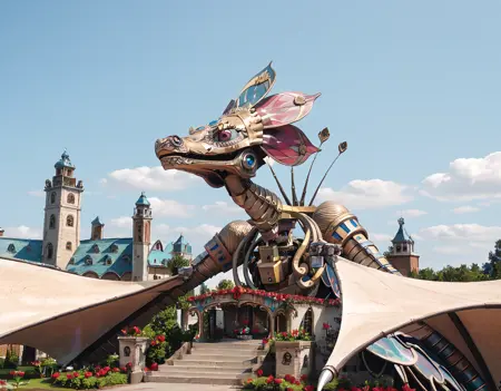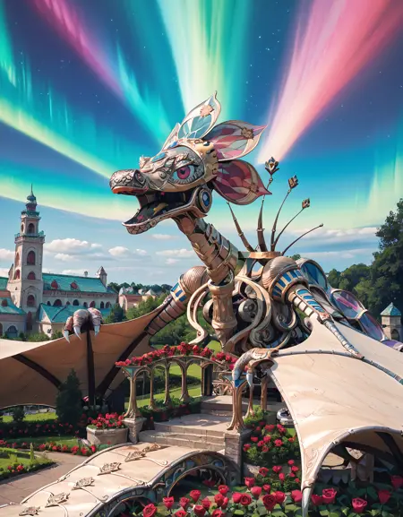 투모로우랜드 팀이 설계하고, Fisheye가 제작 및 구현한 로즈 가든은 우리 스스로 말하더라도 기술적 걸작이라고 부를 만하다. 드래곤의 눈, 입, 아가미 및 머리의 모든 방향 움직임이 조화롭게 통합되어, 우리가 자체 개발한 전용 소프트웨어로 제어된다.