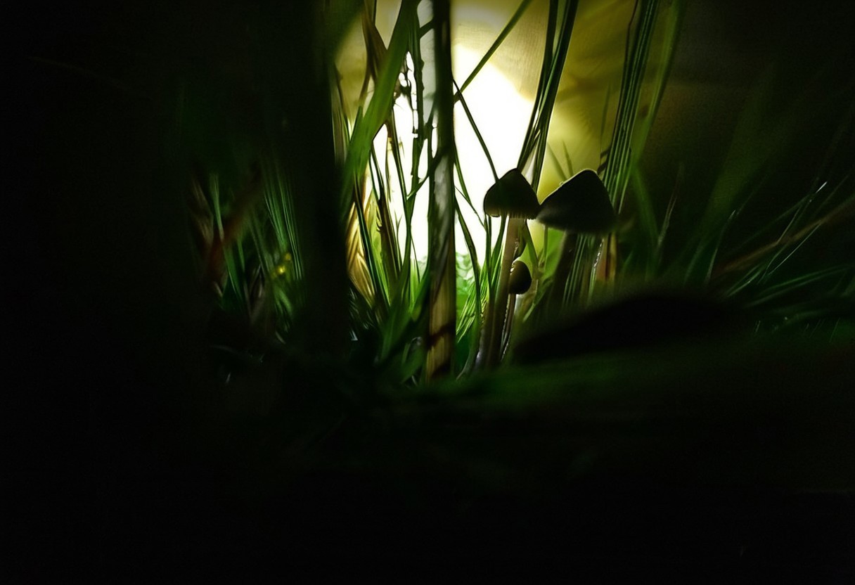 GrassShrooms_(Dark/Low Key/Night photography - Psilocybe semilanceata in grass)