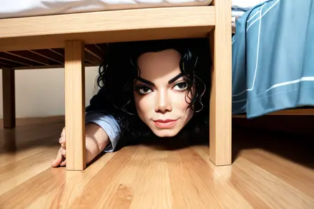 マイケル・ジャクソンがベッドの下に隠れている様子