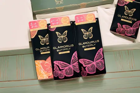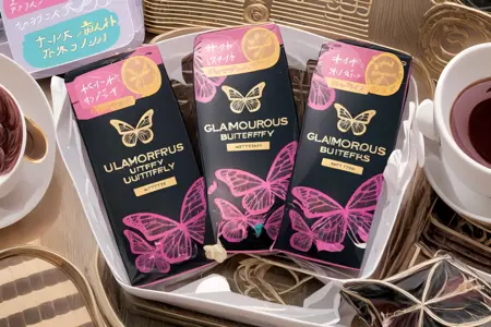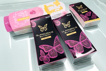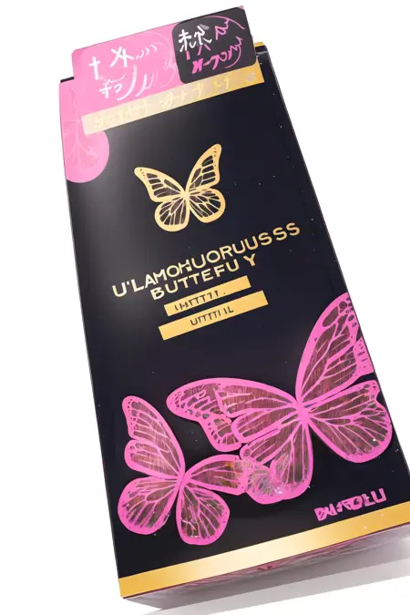 이는 '여성이 스스로 선택하는, 여성을 위한 콘돔을 만들고 싶다'는 컨셉으로 인기 있는 JEX 콘돔 GLAMOUROUS BUTTERFLY 시리즈 HOT TYPE의 박스처럼 보일 수 있는 LoRA입니다
