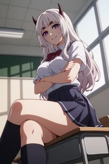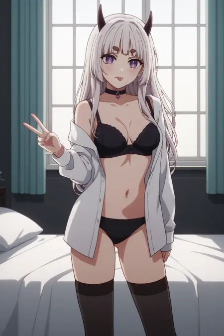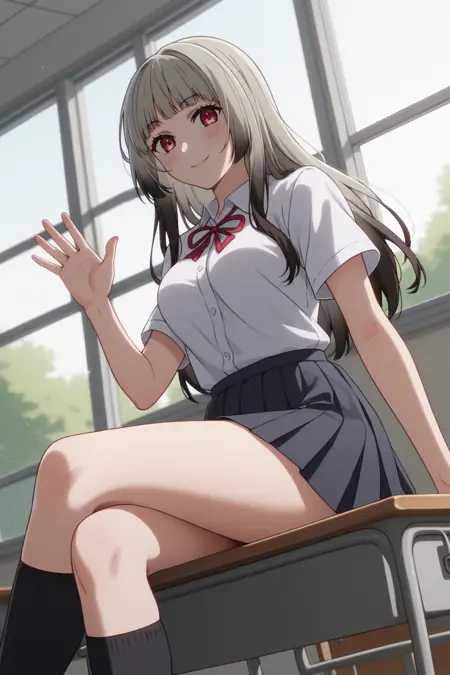 触发词: KJOmei,灰发,红眼,侧发,长发,黑色发梢,齐刘海