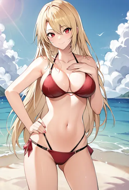 트리거 단어: angelica_redgrave, 금발, 붉은 눈, 땋은 머리 기반의 헤어핀, 땋은 머리