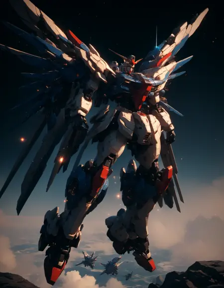 트리거 단어는 단지 예시일 뿐 필수는 아니며, 이를 사용하면 결과가 더 인간적이지 않고 넓어 보입니다. "no human", "robot", "gundam", "machinery"와 같은 단어도 추가할 수 있습니다.