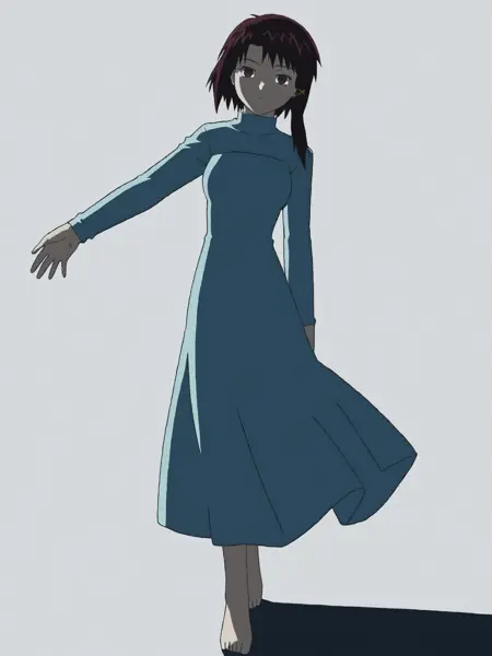 iwakura lain ps, yellow turtleneck dress, barefoot