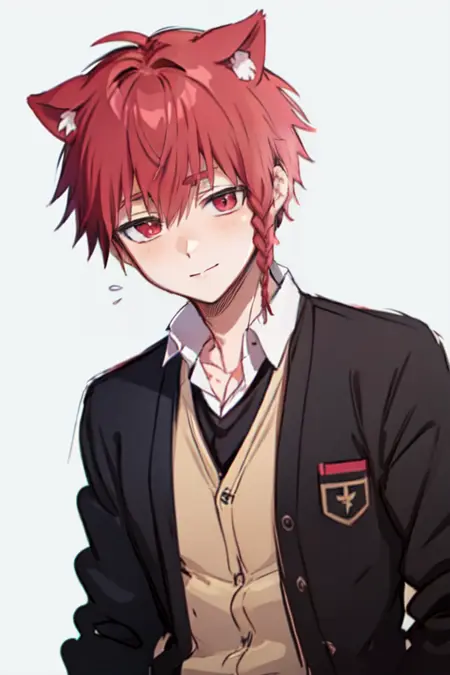 触发词:ranze kurona,辫子,单辫,红发,红眼,短发