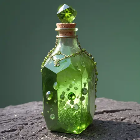 キーワード:YOUR TEXT は hud_per1d0t_wrld、緑の宝石、きらめく、ファンタジック、空想的