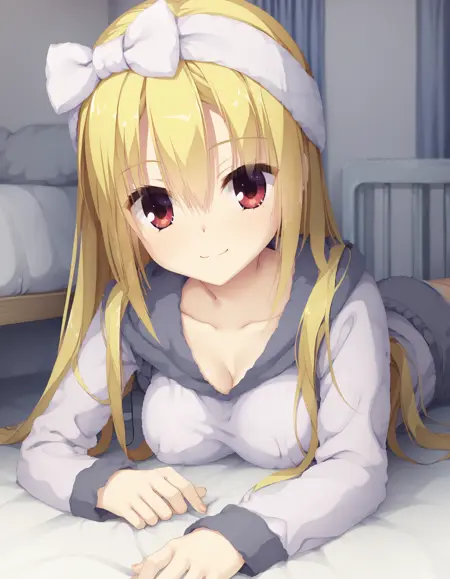 arihara_nanami, yuzi-soft, 금발, 긴 머리, 붉은 눈, 눈 사이의 머리카락, 큰 가슴,