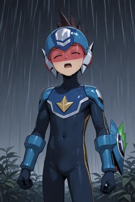 star force,棕色头发,棕色眼睛,蓝色连体衣,蓝色头饰,蓝色手套,有色眼镜,蓝色靴子