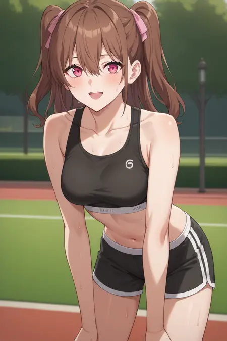 トリガー: KJOmikari, 茶色の髪, ピンクの目, 両サイドアップ, 目の間に髪