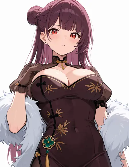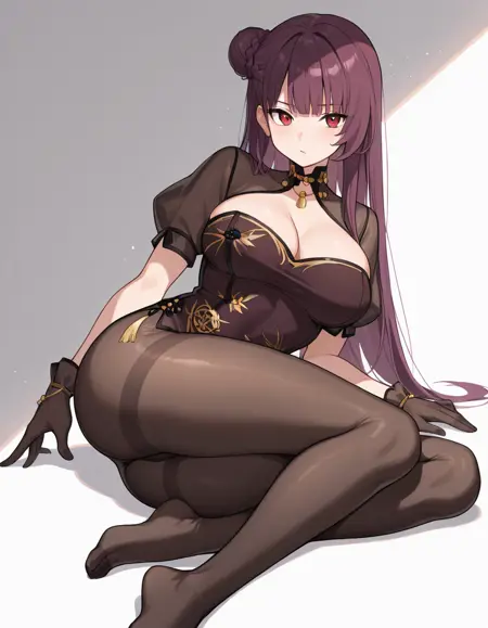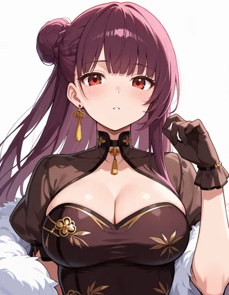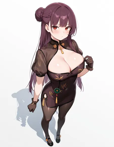 MakiattoCN, CN_china_dress, CN_gloves, CN_pantyhose, CN_shoes, braid, single hair bun