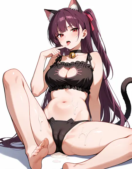 Makiatto, red eyes, long hair, purple hair, straight hair