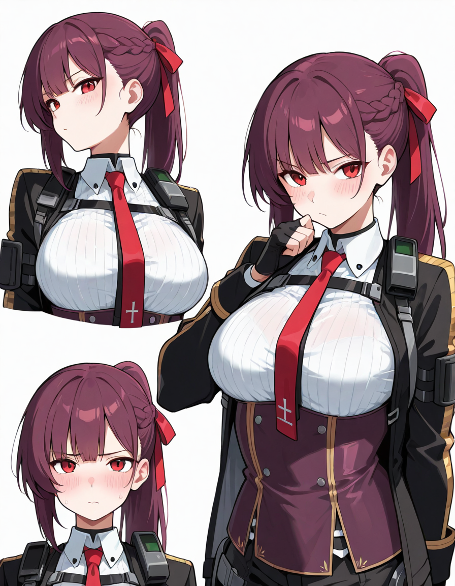 WA2000, long hair,purple hair, red eyes, ponytail, braid