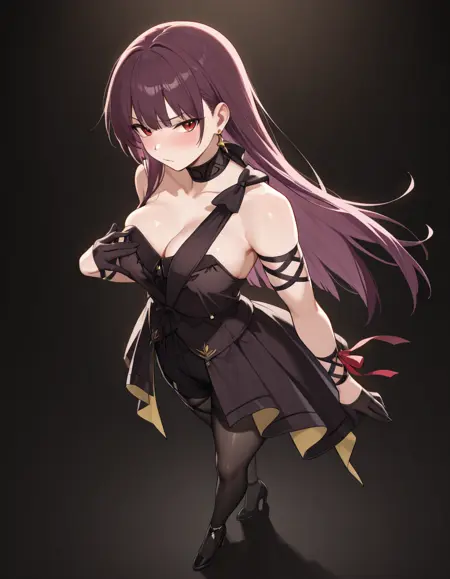 WAdress, BI_dress, BI_choker, BI_arm_ribbon, BI_half_gloves, BI_pantyhose, single arm ribbon