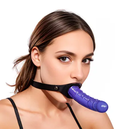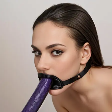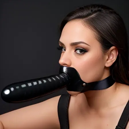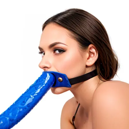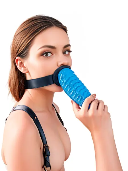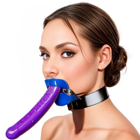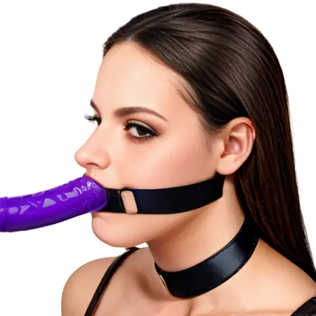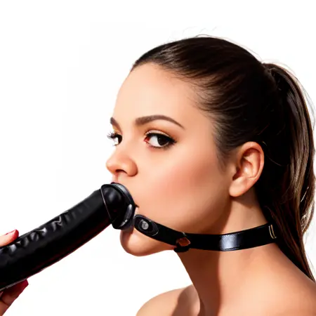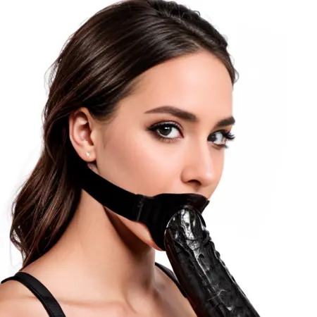 strap0nfac3,1girl,black dildo,black strap-on,black dildo face,black strapon gag,black dildo gag,