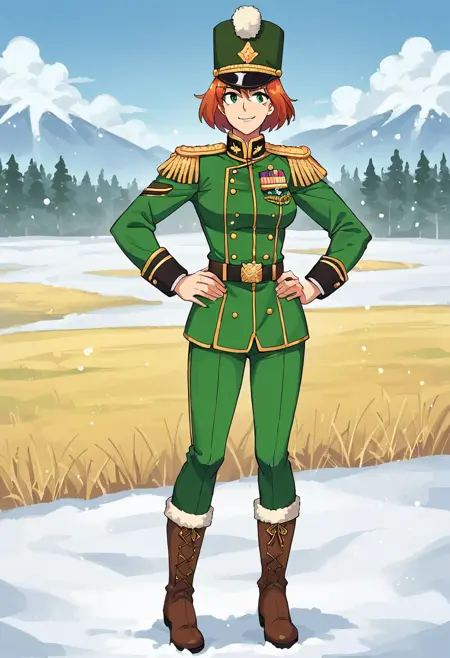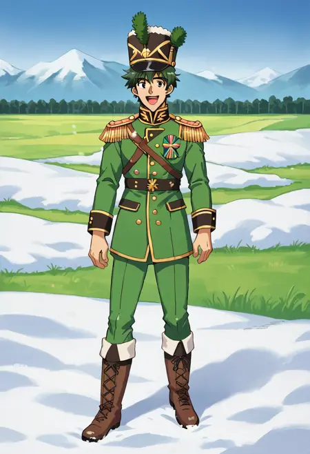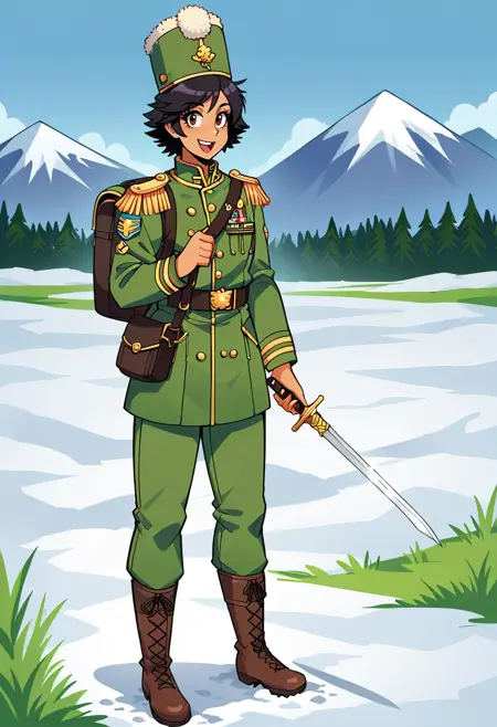 此模型描绘了一种通用的1812年战争时期步枪制服。触发词为“greenrifle”,推荐添加“military uniform,green jacket,green pants,boots,hat”。