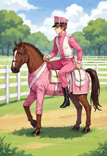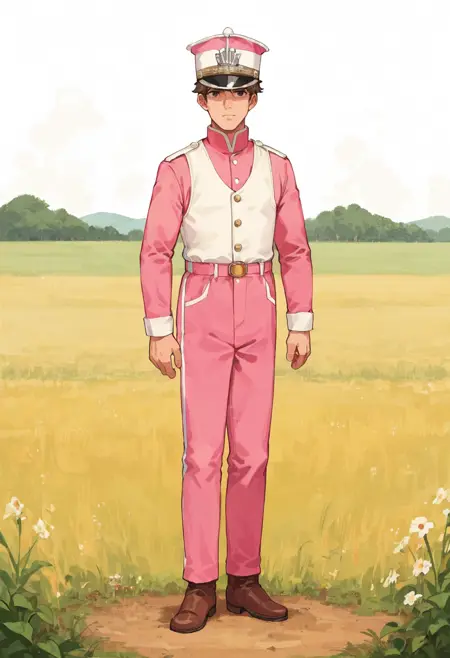 프롬프트는 "BergLancer"이며, "uniform,jacket,pants,shako cap,boots"가 포함된다. 가장 흔하게 묘사되는 버전을 원한다면 "White Vest"와 "pink jacket"을 사용하는 것이 유용하다.