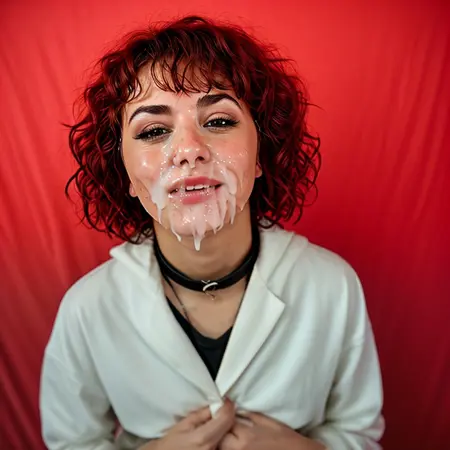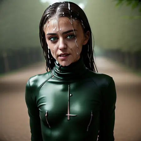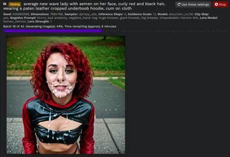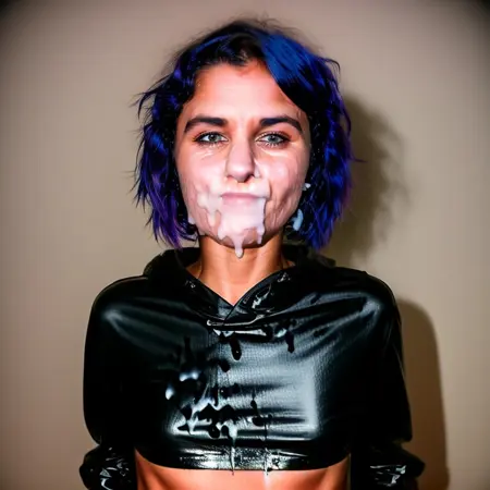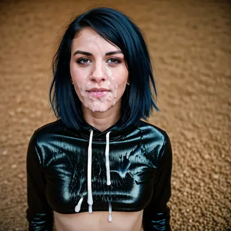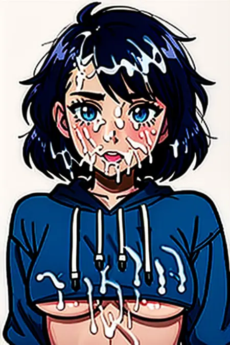 顔や服に精液をつけて(できれば女性を)生成します。実写モデルで(ここでは@CivitAIで)学習させましたが、アニメスタイルのモデルでもうまく動作することに驚きました。