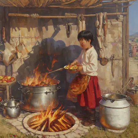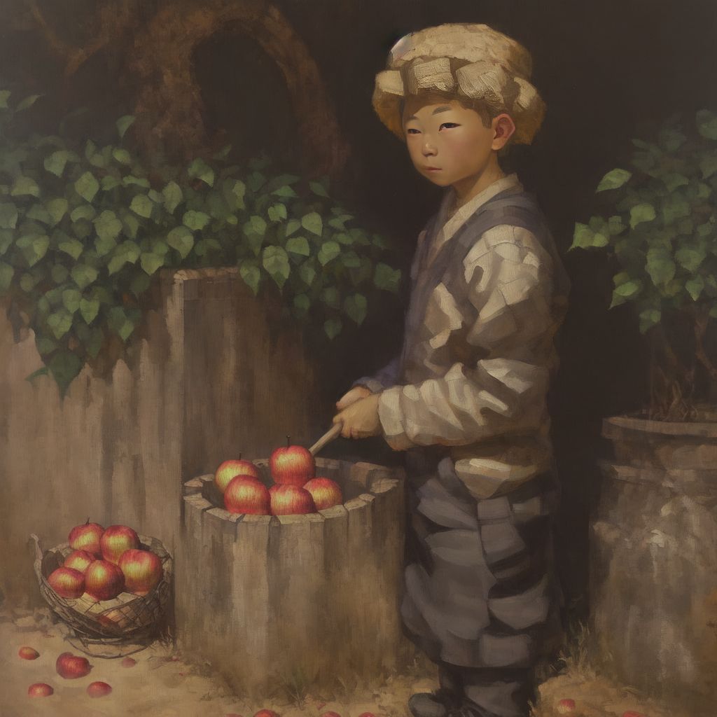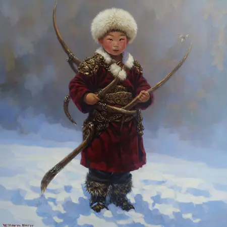 代表作と言ってよい彼の作品たち——大まかに言えば——「フェンスの少年」[https://www.artstation.com/artwork/Xnz5NR]、「若きバタイル」[https://www.artstation.com/artwork/EVxR3N]、「赤いスリッパ」[https://www.artstation.com/artwork/QzevdL] ——は、過酷な気候下の環境にもかかわらず、人々や子供たちの生活様式や行動を記録しています。