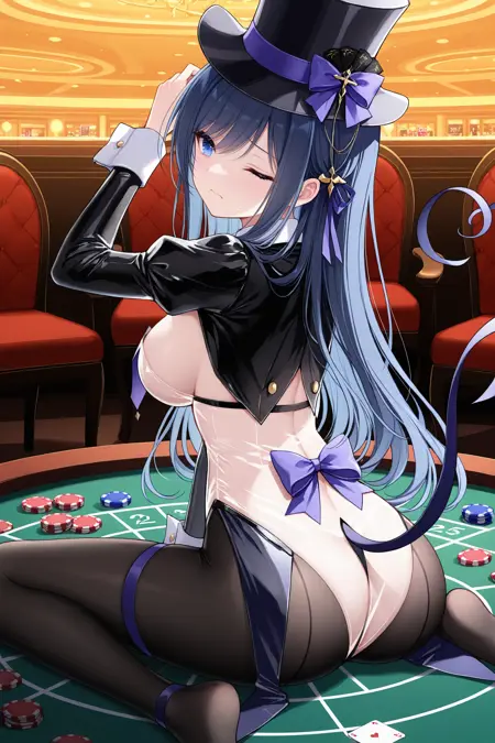 cheshire(magic hat),reverse outfit,white bodysuit, see-through,puffy sleeves,pantyhose,