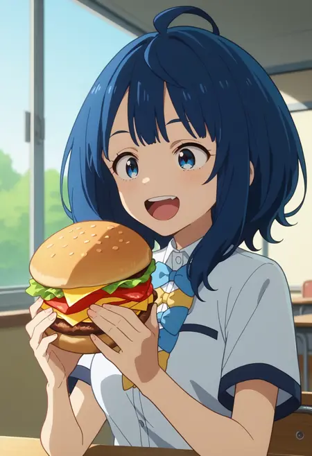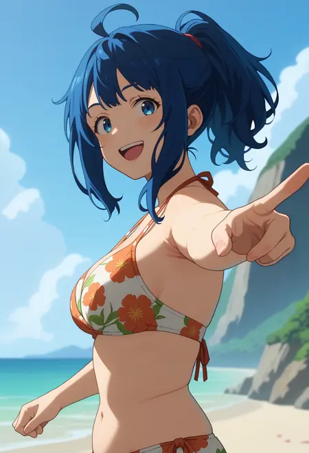 트리거: KJOanna, 파란 머리, 파란 눈, 중간 길이 머리