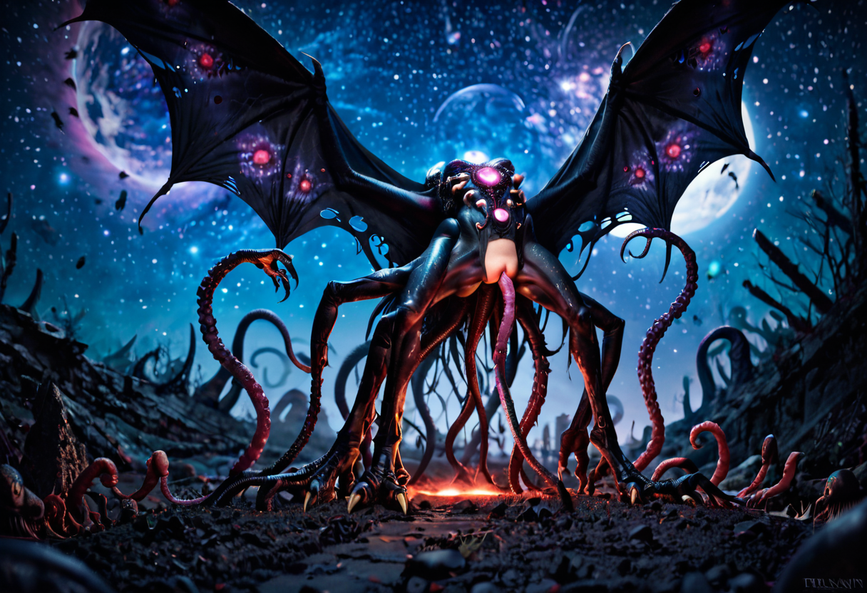 Cthulhurotica - 신화 스타일의 성적 장면. 초점이 맞춰진 이미지. 우주적 공포와 촉수 성. 별들이 곧 제자리에 도달할 것이다! 이아! 이아! 큐술루 페타그!