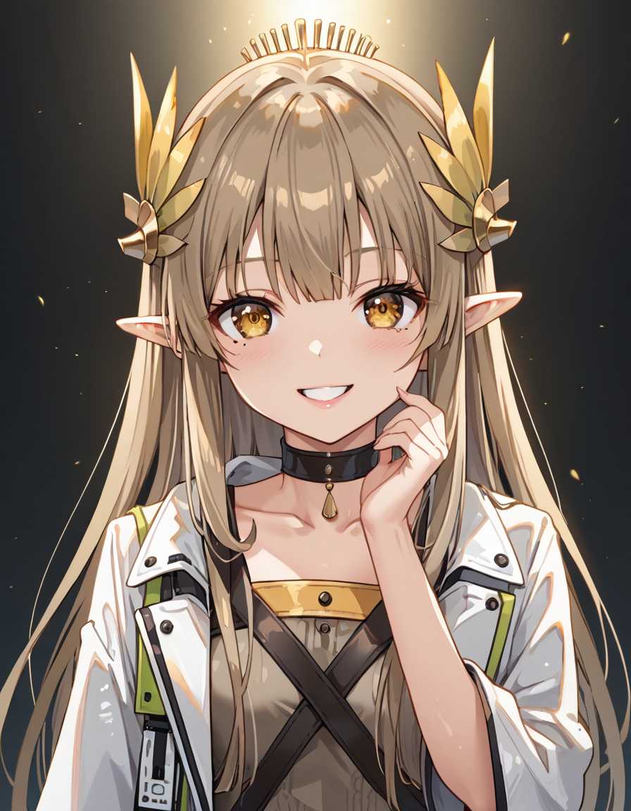 Mumu, long hair, brown hair, golden eyes, pointy ears, mole