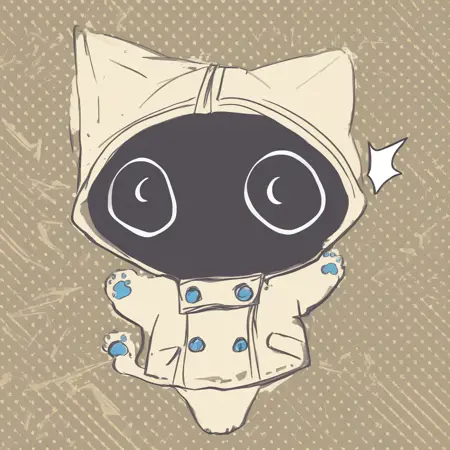 Prompt Should Have(Versions after E20): neumaf, 1other, cute, electric plug tail, black eyes, black face, white windbreaker, red star on clothes