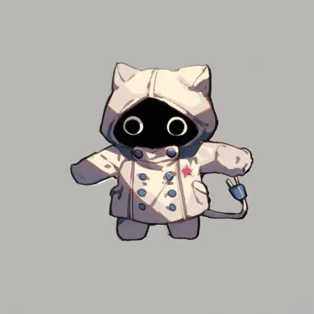 Prompt Should Have(Versions after E20): neumaf, 1other, cute, electric plug tail, black eyes, black face, white windbreaker, red star on clothes